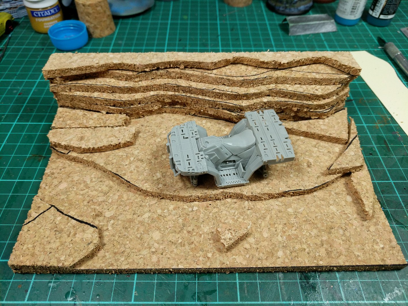 Then to try something else I want to do a small diorama to show it off and try and put into practice some of the things I learned from Aaron xxxx. My initial thoughts are to go with an arid setting, maybe a dry river bed or something like that so that I can have a few different levels. The ATV would then be sitting in this to give it the feel that it in cover and the rider is taking stock of where he is or what his next job is. All a bit ambitious for me but I like the story here and it will be good to try out some new things. Plus it might get me working a bit harder on other things. Either way this one is going to be something of slow burn and I think it will take quite a few attempts before I get something I will be happy with. I’ve got some cork sheeting on order to use to get the general bulk and shape of the base and this will then be covered with air dry modelling clay to get the detail and texture. Nice and simple to write it down but I have no idea who it will turn out in practice but I will share the good and bad bit with you.