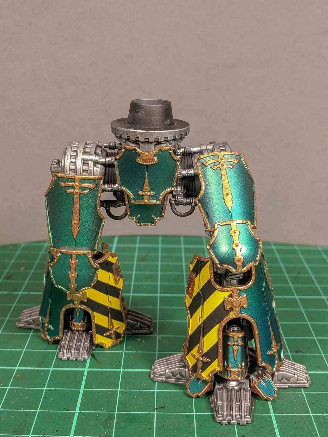 Things have calmed down a bit this week and I’ve had what I think is quite a good hobby week which I hope in turn give you a good weekly waffle. Although when it came to actually writing up what I’d been up to my fingers have not been dancing over the keyboard. It’s been like typing on a keyboard covered in molasses but the brush has flowed a little easier. I’ve been concentrating on the Warlord Titan with the legs now on the base and I think they are looking ok. They still need the weathering and they will also end up with a mat finish for most of the lets to try and give them the feel have having walked through a hive, knocking buildings down as it goes. Most the work on the legs was finished last week but I’ve kept going back and finding bits of detail that I wanted to pick out and a few bits that I had simply missed. Putting the legs on the base seems to give the limited progress a bit of substance.