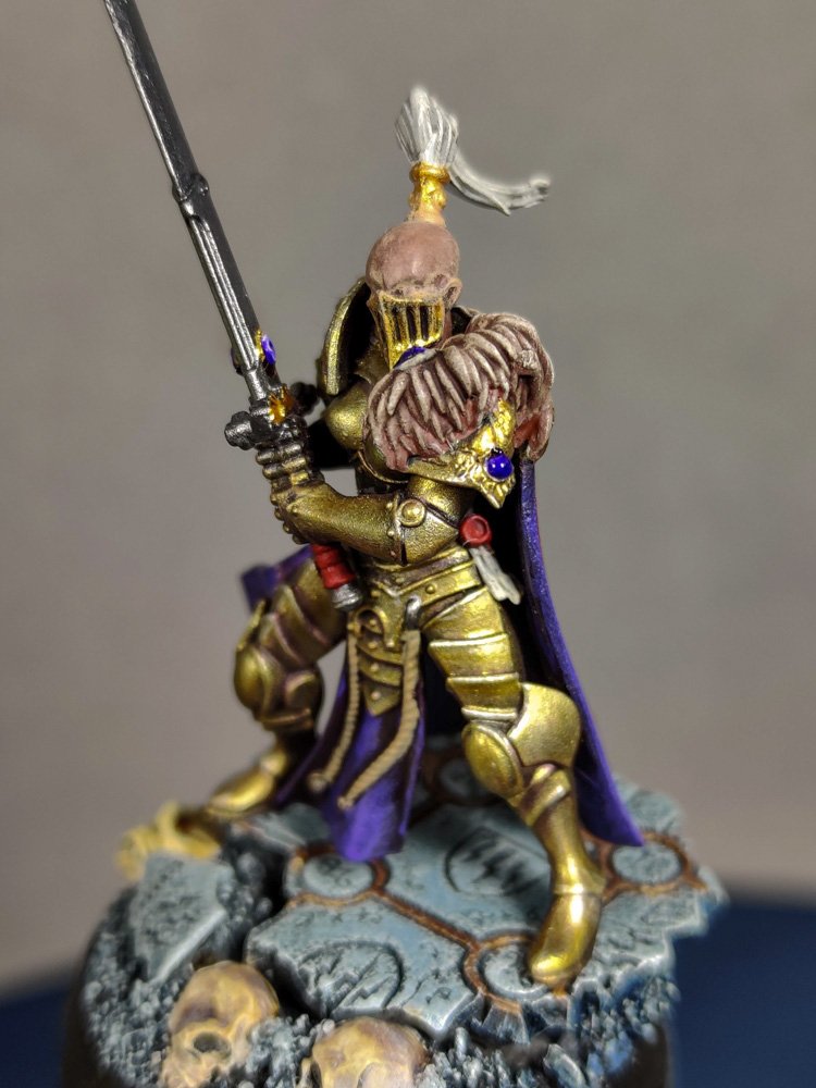 Now the important thing here for me is that I haven’t got to hung up on them. I’ve tried to get them to work but in the end I made the decision that I wanted to enjoy the process of painting them and I’ve moved on. Which is when I look at them as a whole I’m really happy with how they have turned out. The gold has the right feel of being decorative and ornate without being to shiny. The cloaks give them a bit of contrast and the switch from white to red hair give them a nice pop. Looking at them all together they look nice and cohesive and I would be more than happy to put them down on any table and say that I painted them. I like them so much that I’m thinking of getting some Custodes to go along with them, but what do you think of them.