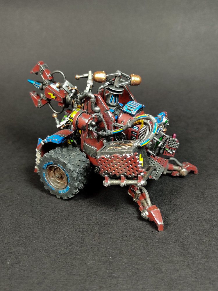 I have also been playing around with another idea for a Deff Dread creation. I have my bendy dread that looks like it could fit in to a speed freak army. But that is something of a one off, although I would like to have another go at that build. And it was whilst I was thinking about that that I came across some other ideas. I follow an artist called Patrick Wagesreither on instagram and he has some wonderful creations. One of them is basically a ball with a central track which is a tank. This got me thinking that this idea could be tweaked to provide a nice Deff Dread design. It would have to have a mix of close combat and ranged weapons to work properly but that is most common configuration anyway. So you would have a ball with a track running around its circumference. Then on the opposite poles to where the track is running you would have the close combat arms sticking out and then just to either side of the track you would have your ranged weapons. Add lots of bolt, exhausts and general ork gubbins and I think you will have a very nice, alternative looking Deff Dread. But the real winner would be that it will look fast. Or at least a lot faster than a standard dread.
