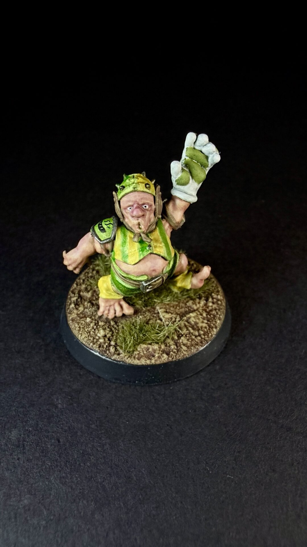 Let’s set the stage here. In the lore of Blood Bowl, Halflings are often depicted as jovial, food-loving folk who make their home in idyllic villages, far removed from the brutalities of the game. But don’t let their charming appearance fool you. The Halfling Catcher is a whirlwind of energy and agility, a player who embodies the thrilling chaos of Blood Bowl while also embracing the heart and humor that the Halflings bring to the pitch. They may be small in stature, but they play with a heart larger than life, making them a joy to watch and an absolute terror to face.