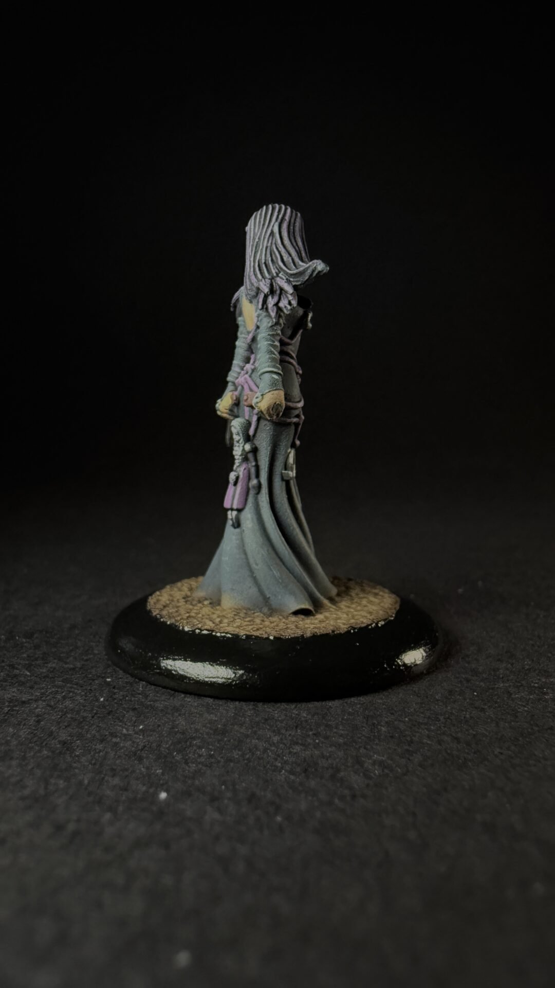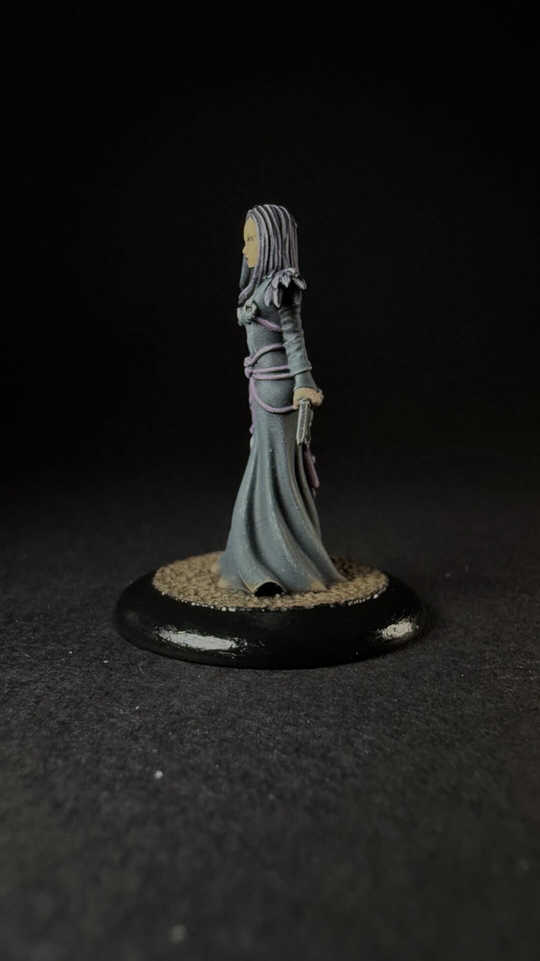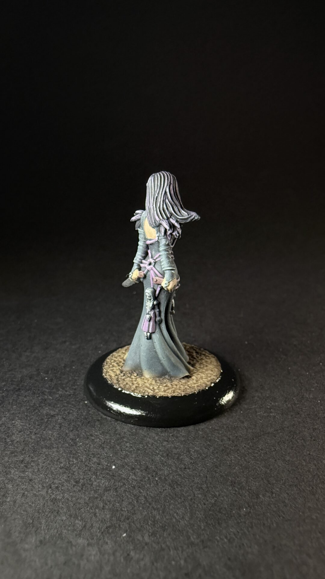 So this week I’ve been continuing, or given the break over Christmas I’ve gone back to my morticians. I think I have five or six of them to get finished so this week I have been working on Cosset. She is very nice mini although as you will see from the pictures I have broken one of knives and I can’t find the blade a the moment. But I am confident it will be in the box with the other minis somewhere. So for now I’ve decided that she has simply broken the blade off in another player who really annoyed her.