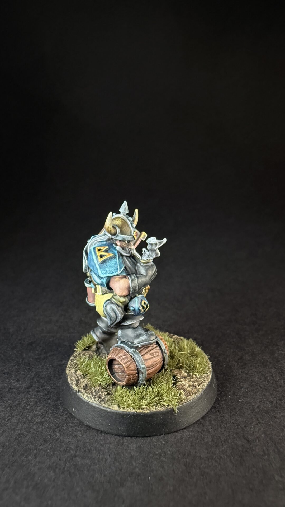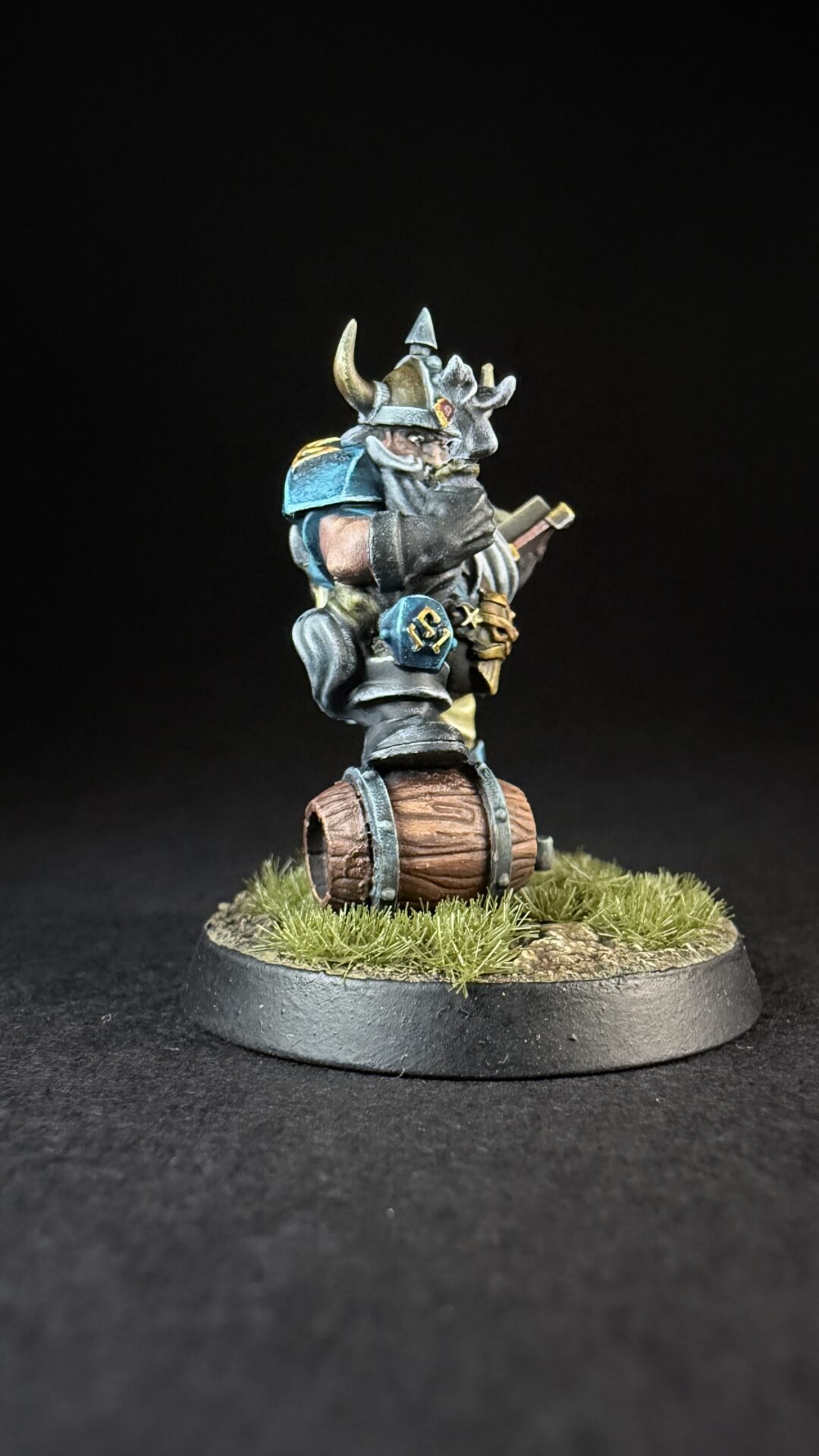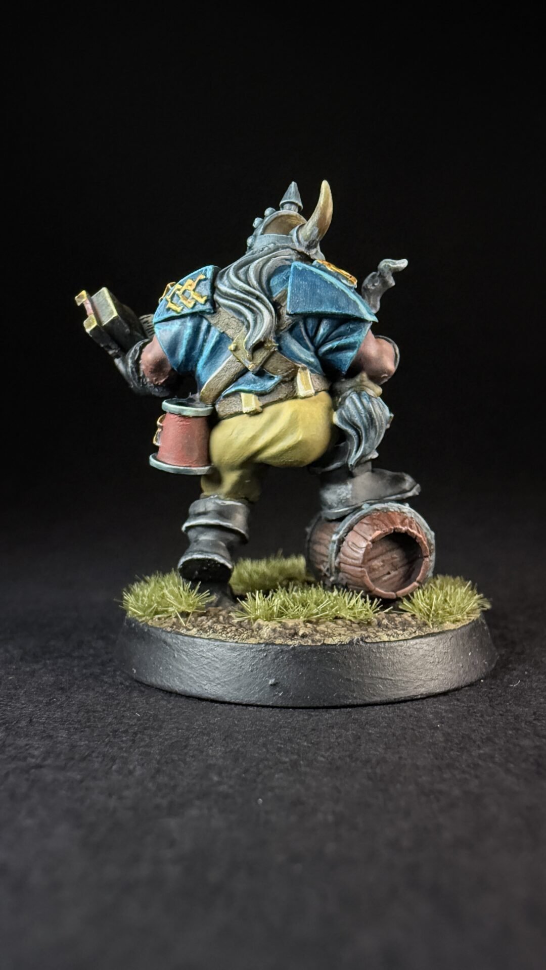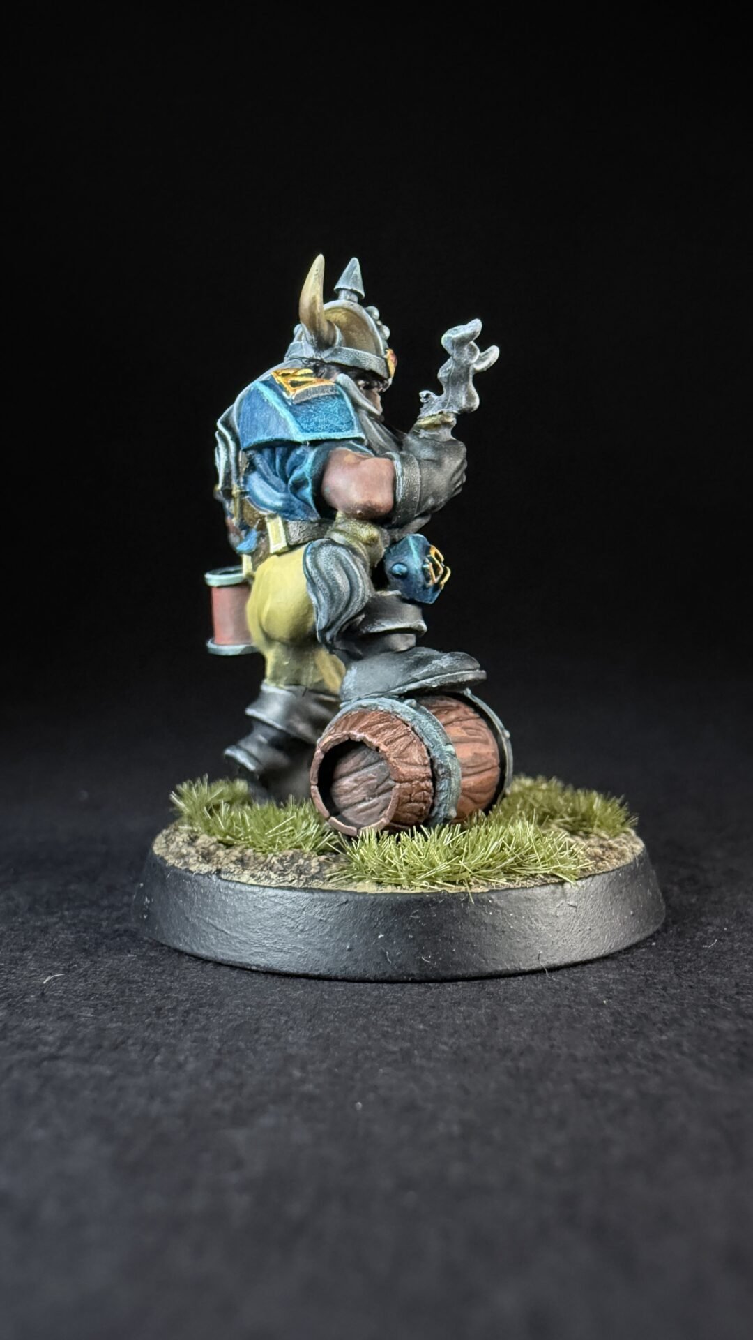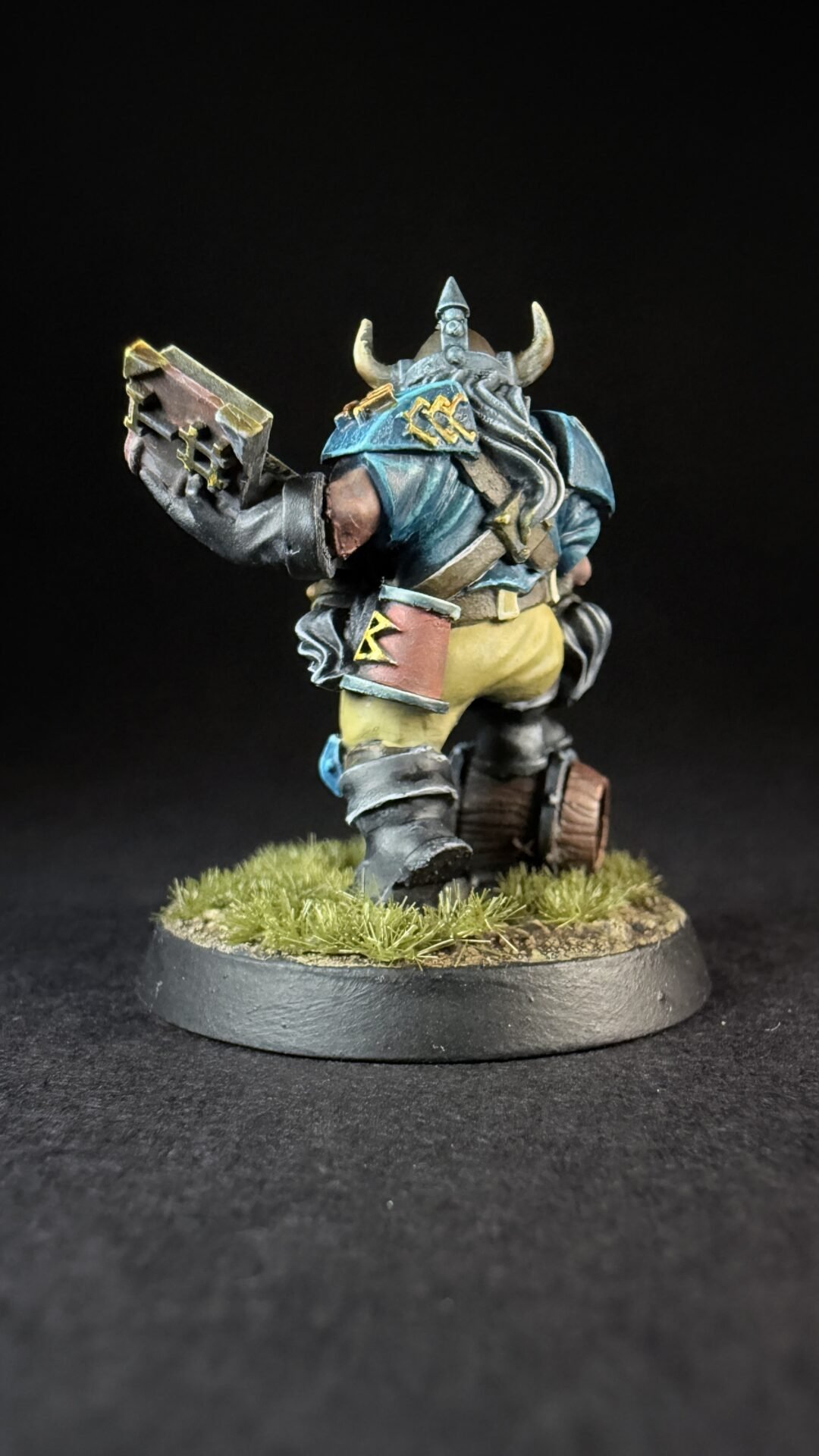 When it came to closures I like the turquoise blue that is on the box art for the dwarves so I decide to not really change things up. I’m not sure if I’ve go the colours exactly the same but I like them an I more importantly I think it’s something I can replicate across a whole team. I’ve kept it simple with the turquoise for his shirt and armour and a light brown or buff colour for his trousers. Noting fancy but I think it work quite well.