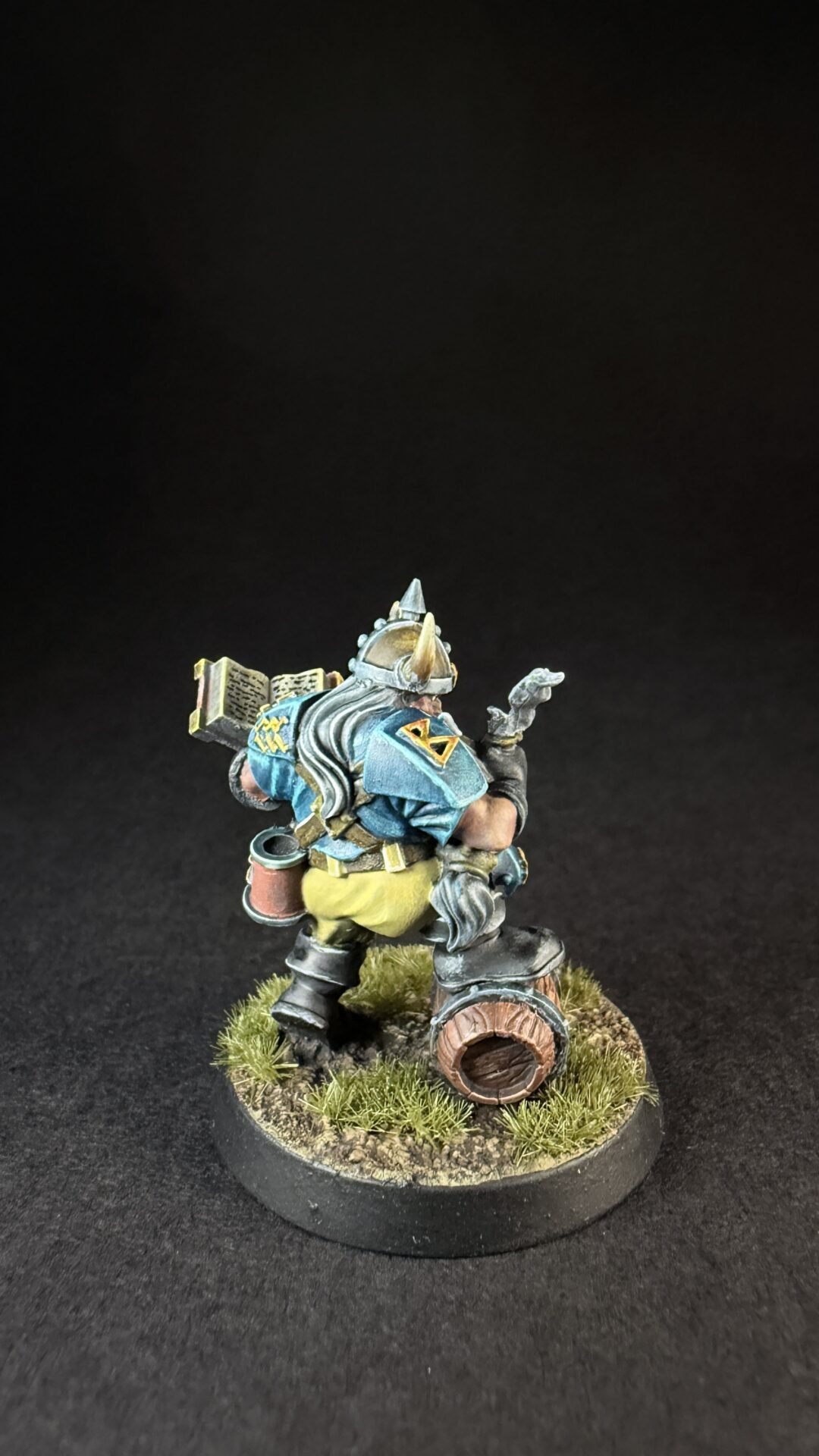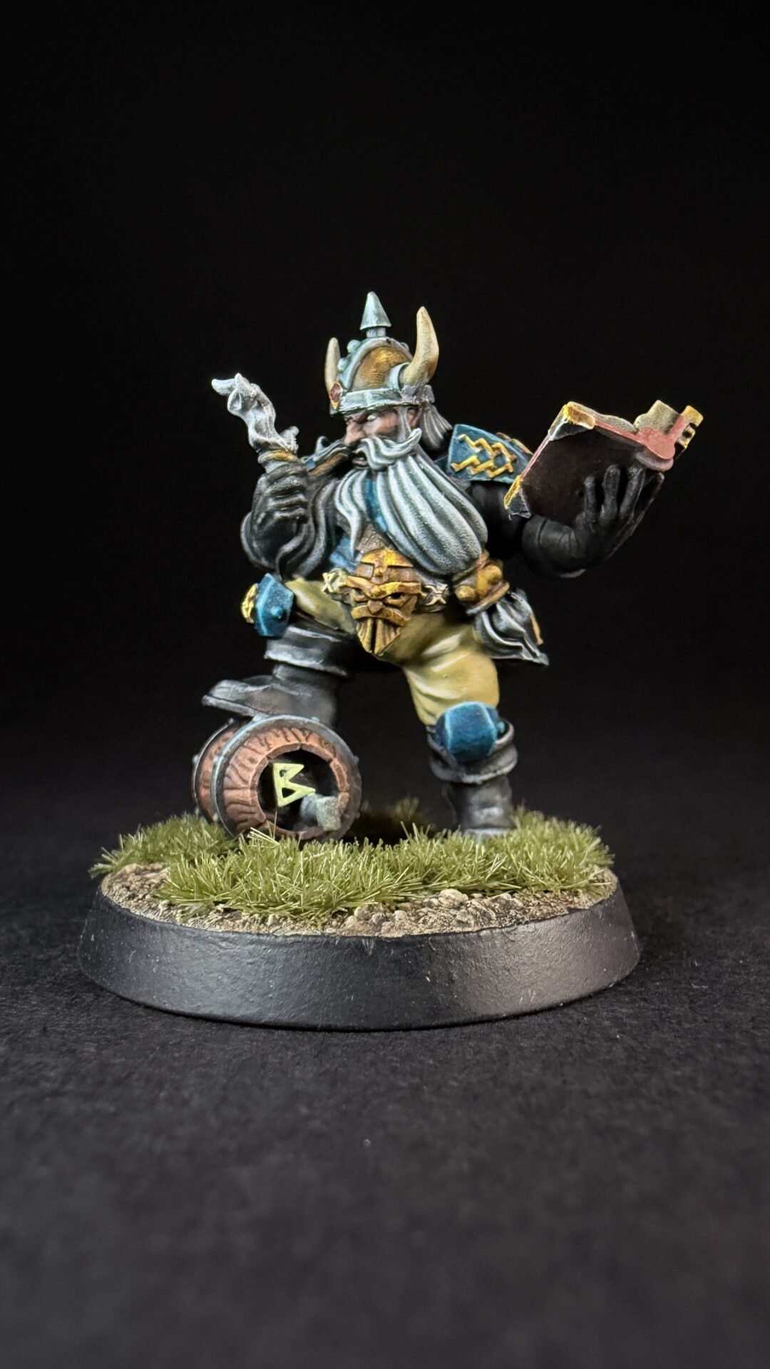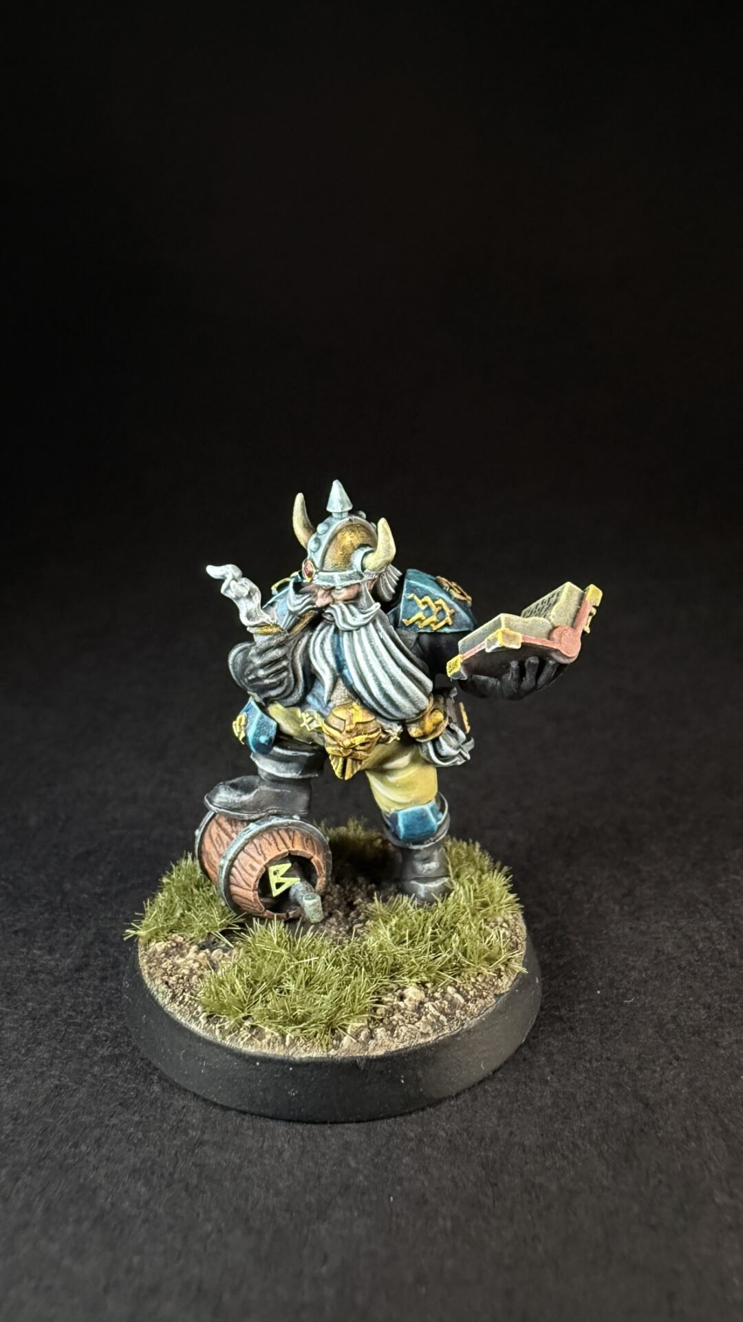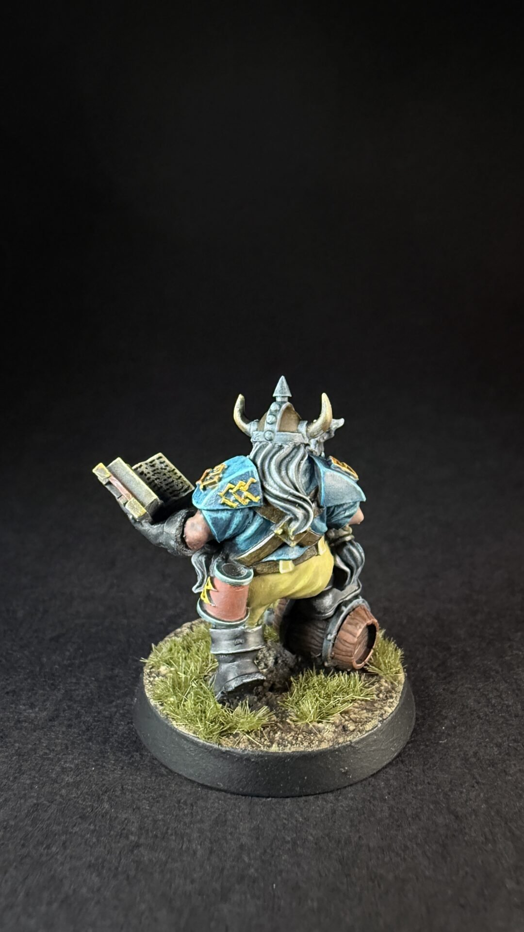 When it came to closures I like the turquoise blue that is on the box art for the dwarves so I decide to not really change things up. I’m not sure if I’ve go the colours exactly the same but I like them an I more importantly I think it’s something I can replicate across a whole team. I’ve kept it simple with the turquoise for his shirt and armour and a light brown or buff colour for his trousers. Noting fancy but I think it work quite well.