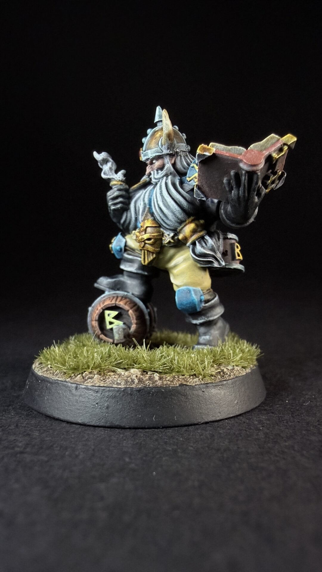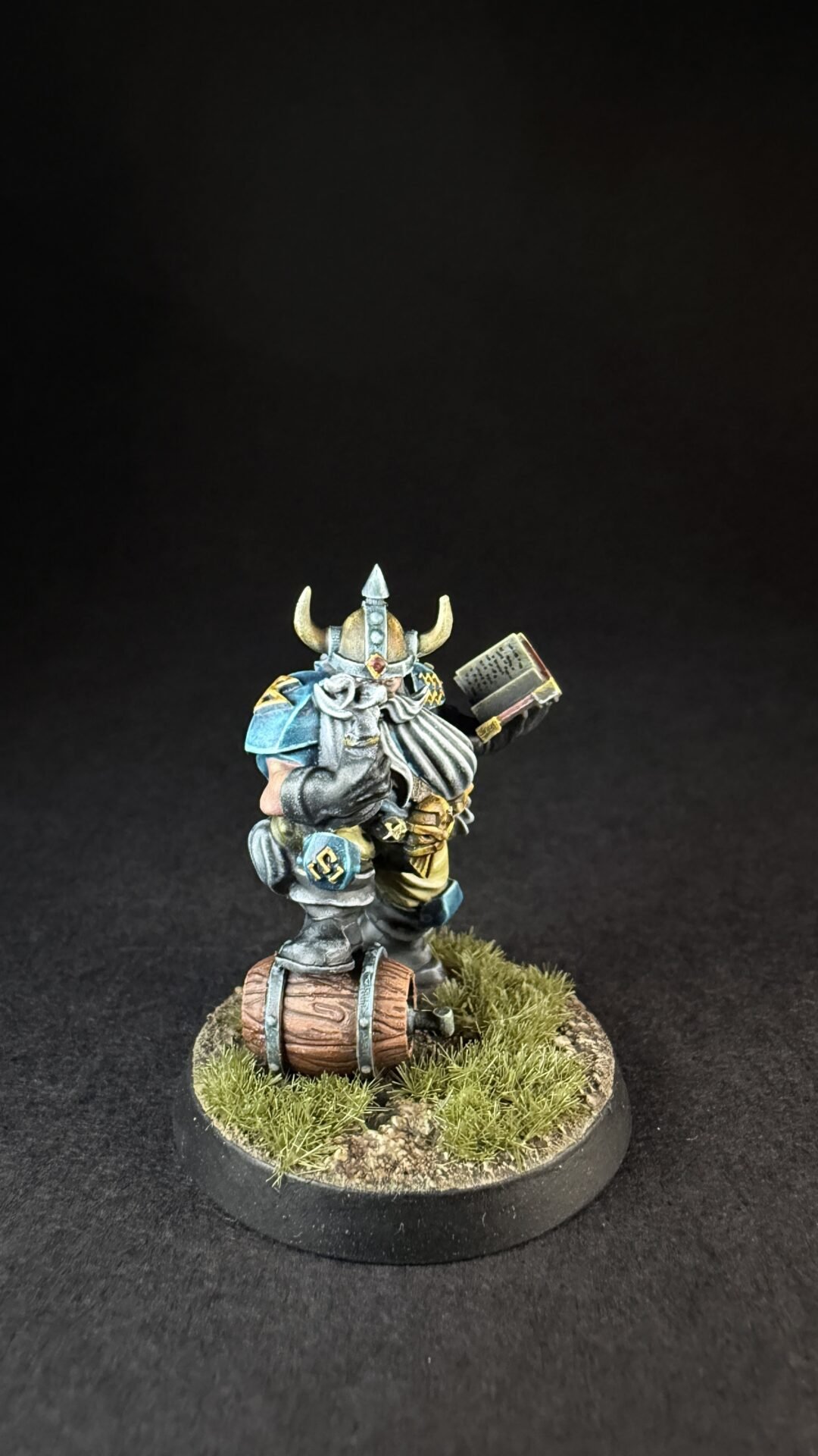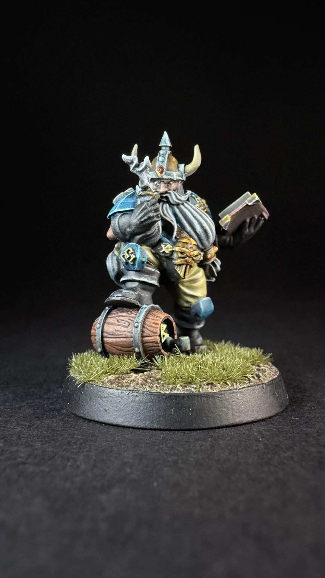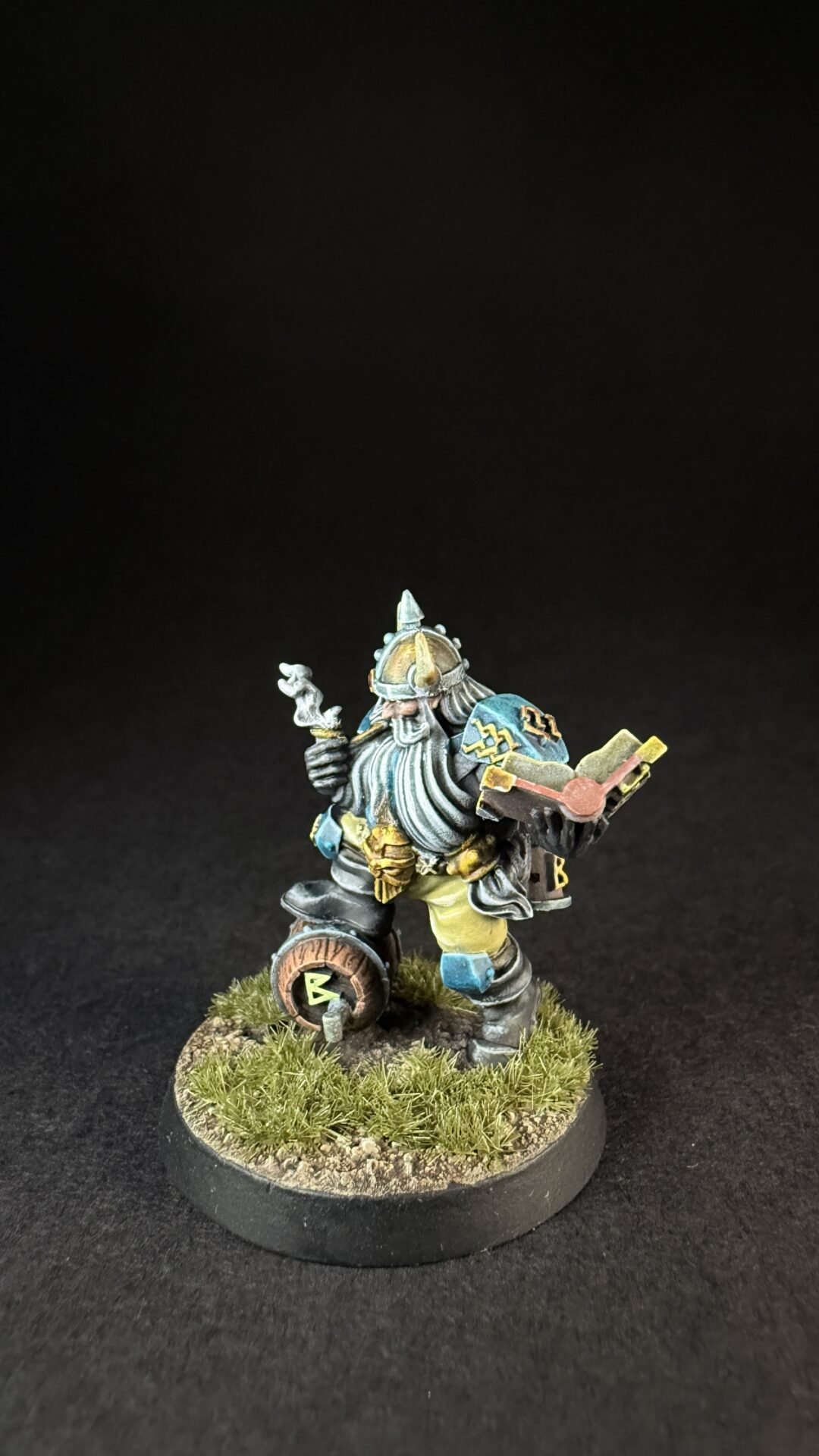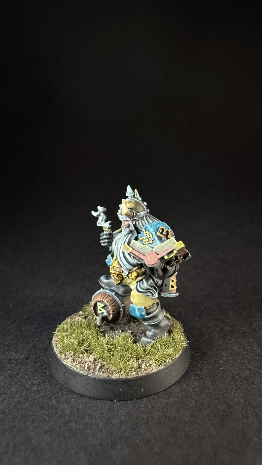 When it came to closures I like the turquoise blue that is on the box art for the dwarves so I decide to not really change things up. I’m not sure if I’ve go the colours exactly the same but I like them an I more importantly I think it’s something I can replicate across a whole team. I’ve kept it simple with the turquoise for his shirt and armour and a light brown or buff colour for his trousers. Noting fancy but I think it work quite well.