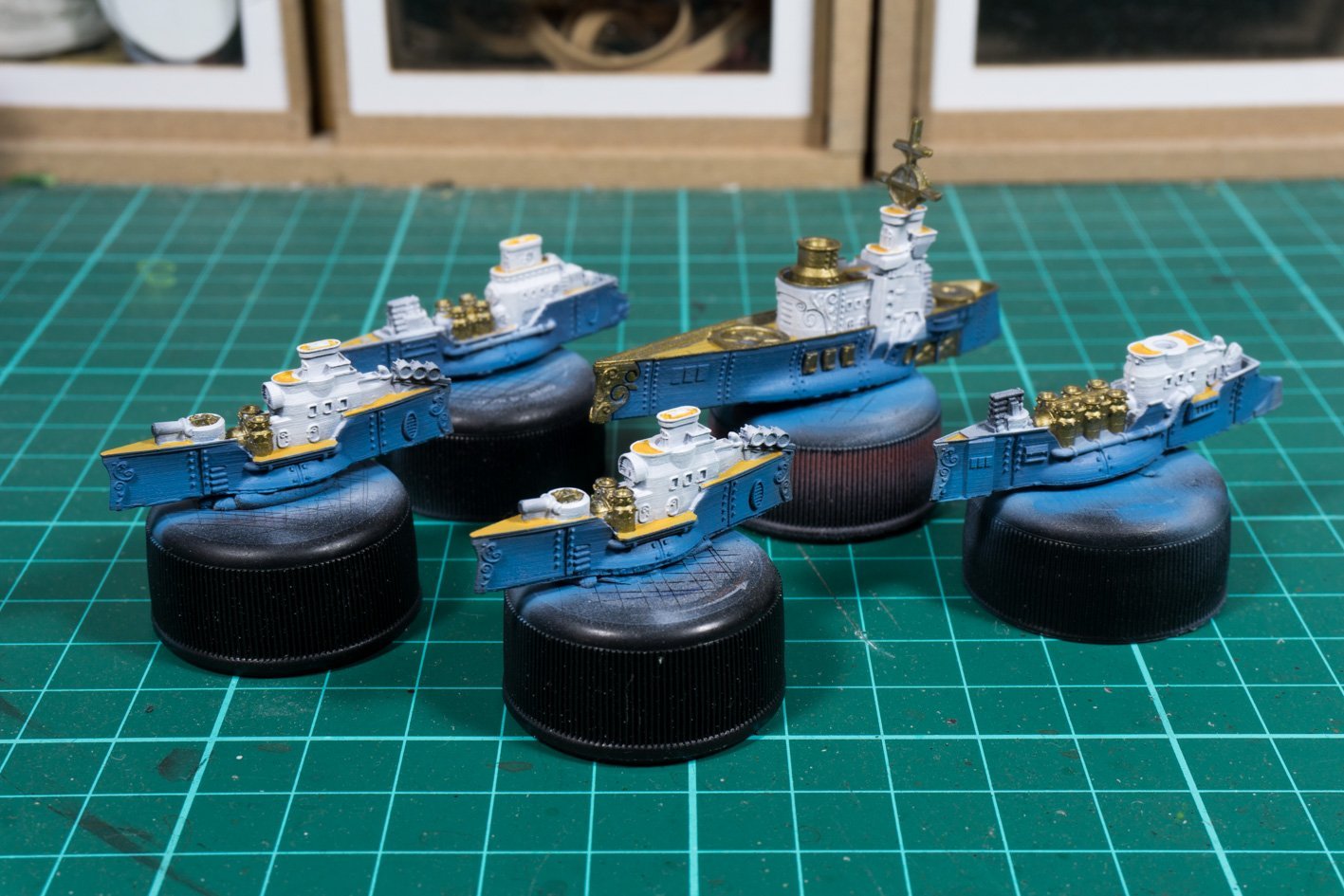 It’s been another really busy week for me this week so I’ve had hardly any hobby time at all so we have a short weekly waffle. I was in Newcastle on Tuesday for work so missed out on game night again. Although we did all go for a few beers in the evening so it wasn’t all bad. The Italian fleet is now following a more Mediterranean build schedule with lots of long breaks. So all I’ve been able to do since last week is to paint all the desks across the fleet and make a start on the details. My first attempt at this was to go straight in…